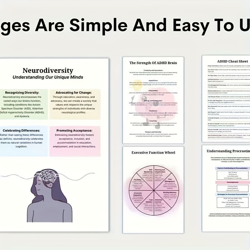 Adult ADHD Late Diagnosis Plan – “Overcoming Procrastination, Problem Solving” Worksheet with Brain Illustrations – English Version, ADHD Cognitive Materials | Creative Adult Workbook | Durable Spiral Binding
