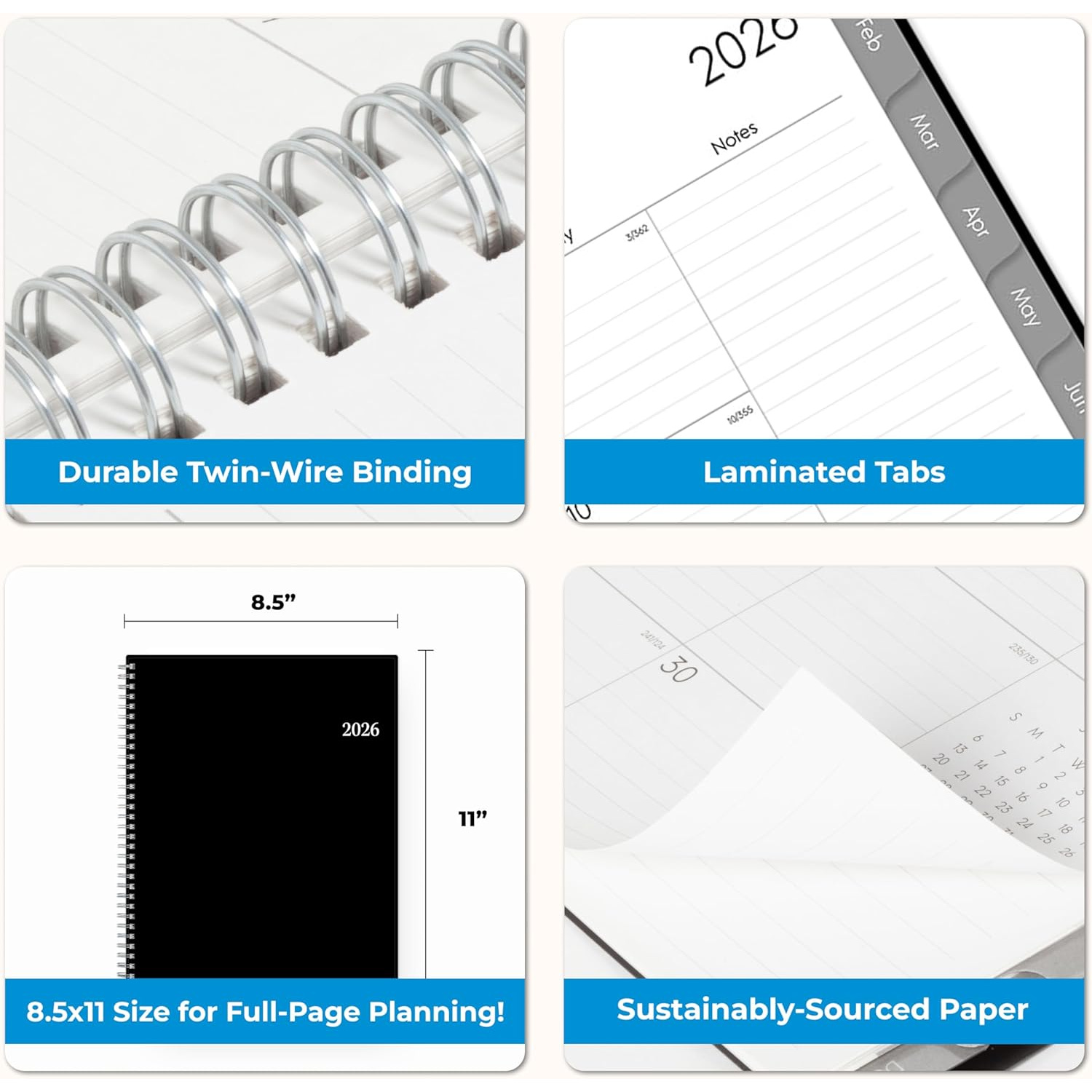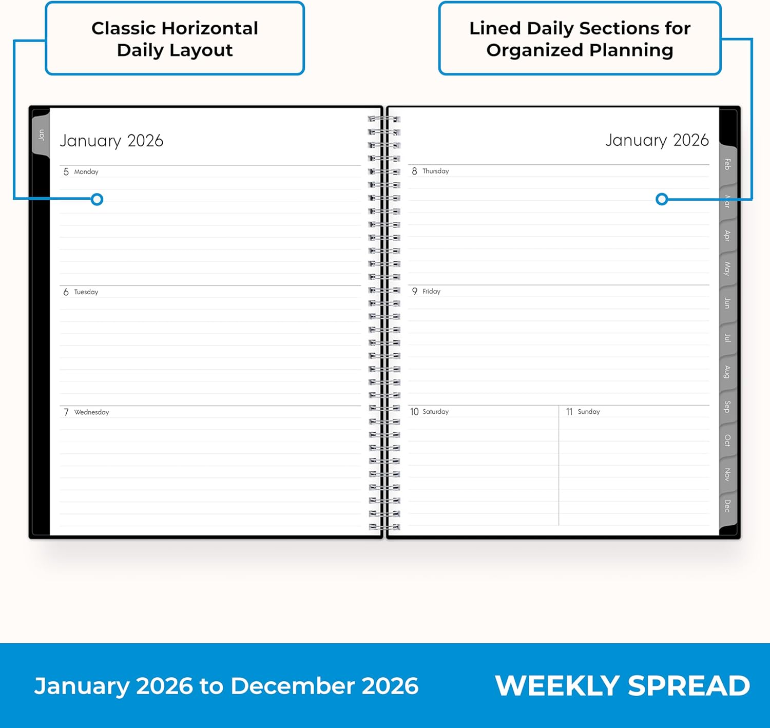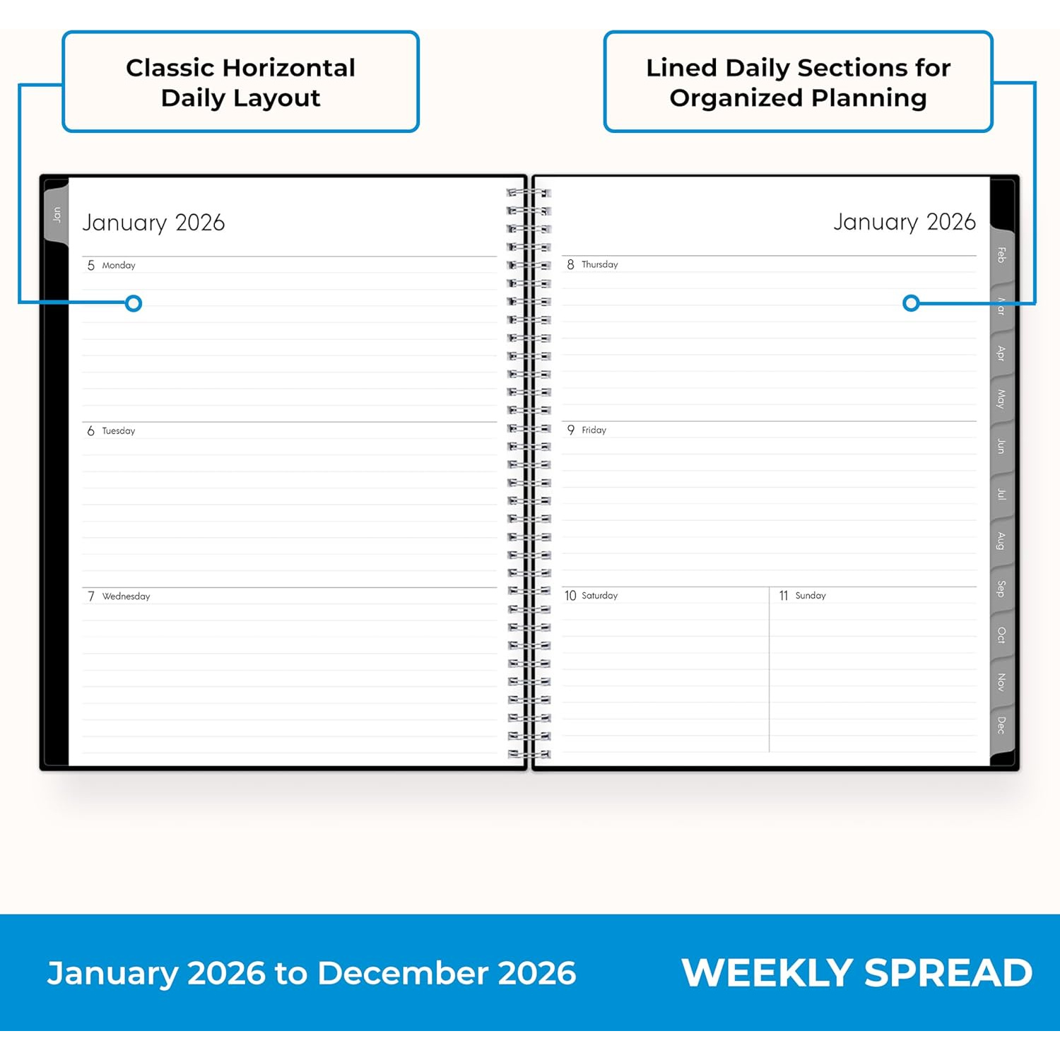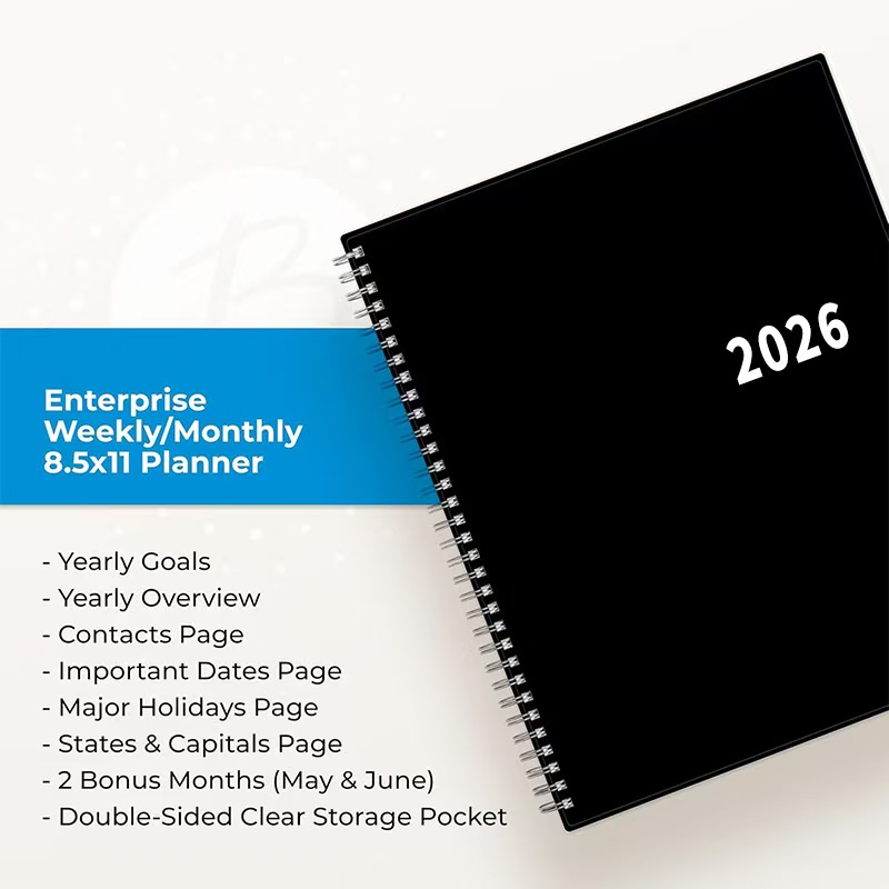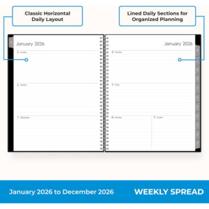 Professional Organizer Suitable for Business, Office – 1pc 2026 Weekly & Monthly Planner Calendar – Large Print Laminated Tab Binder – Flexible Wirebound Cover with Storage Pocket – 2026 Calendar Year
